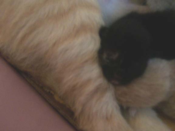 It's not a great picture, (they're not really stationary objects, you know) but you can sort of see (perhaps imagine) that Guinness has foam-colored markings on her face and chin. She's genetically a sloppy drinker.