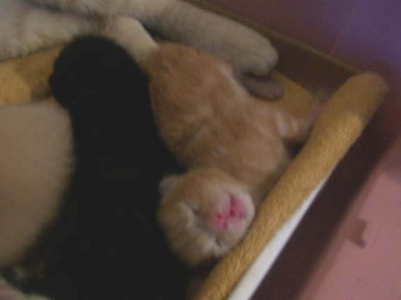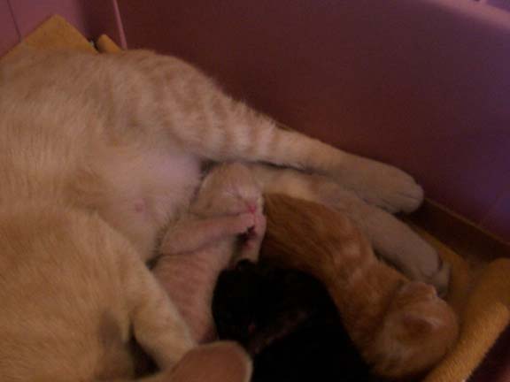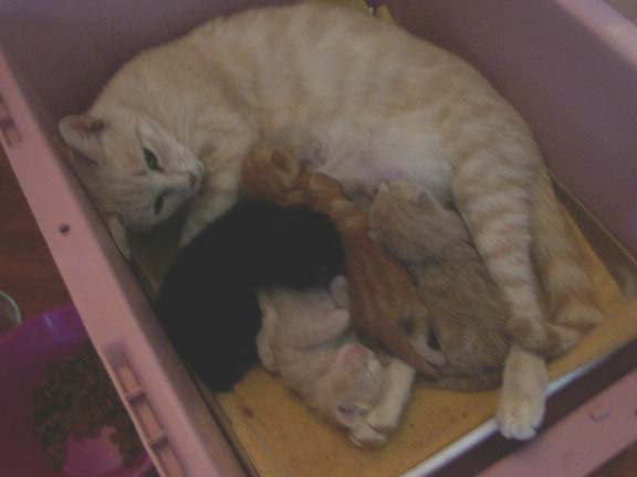 They're starting to outgrow the box. Next week I'm going to have to figure out something new. They're almost starting to crawl. When they open their eyes and start actually becoming active, I'm going to need a bigger box. I know. Duh.
